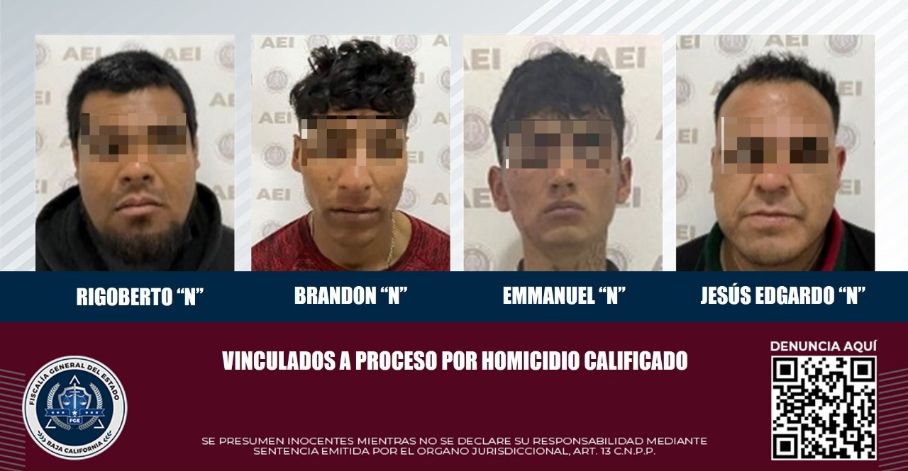 Los acusados Rigoberto "N", Brandon “N”, Emmanuel “N” y Jesús Edgardo "N" presuntamente participaron en el asesinato de dos hombres el pasado 8 de mayo de 2024 en Tijuana.