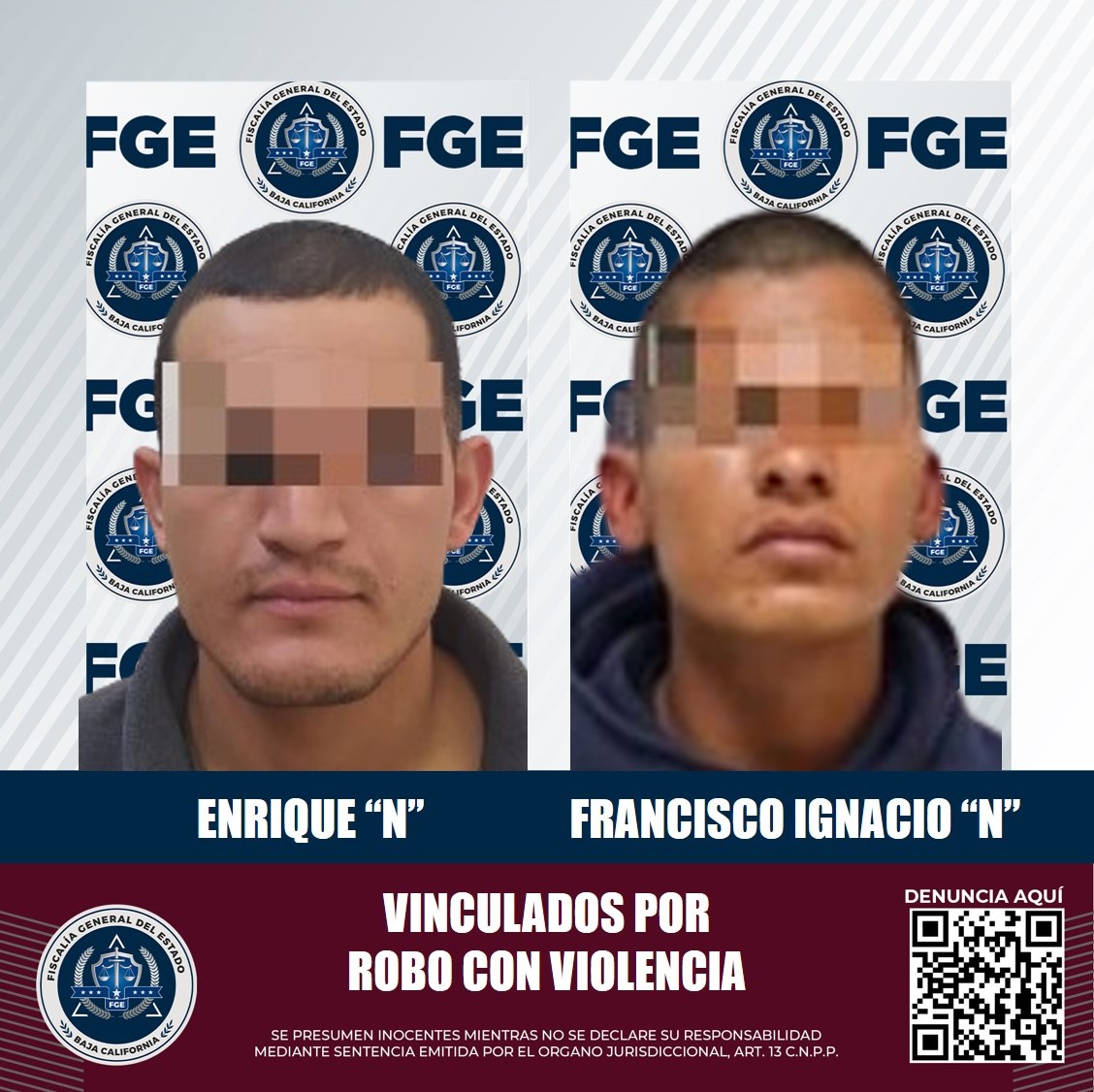 MEXICALI, B.C. La Fiscalía Regional de Mexicali, a través de la Unidad de Investigación de Robos Poniente y Detenidos Poniente obtuvo la vinculación a proceso de dos hombres acusados de cometer robos con violencia.