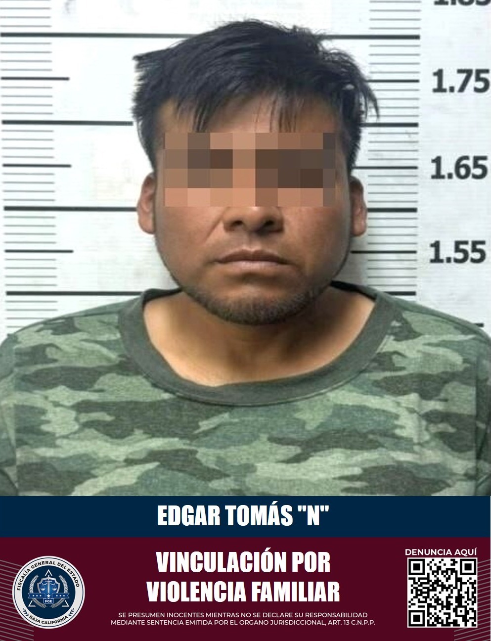 PLAYAS DE ROSARITO, B.C. Por su presunta responsabilidad en el delito de violencia familiar, la Fiscalía Regional de Playas de Rosarito obtuvo la vinculación a proceso de Edgar Tomás “N”, tras un hecho delictivo ocurrido el 24 de mayo de 2024.