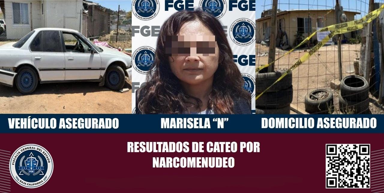 ENSENADA, B.C. La Fiscalía General del Estado ejecutó una orden de cateo en un domicilio en el fraccionamiento Lomas del Sauzal, donde se incautó droga, se recuperó un vehículo reportado como robado y se arrestó a una mujer.