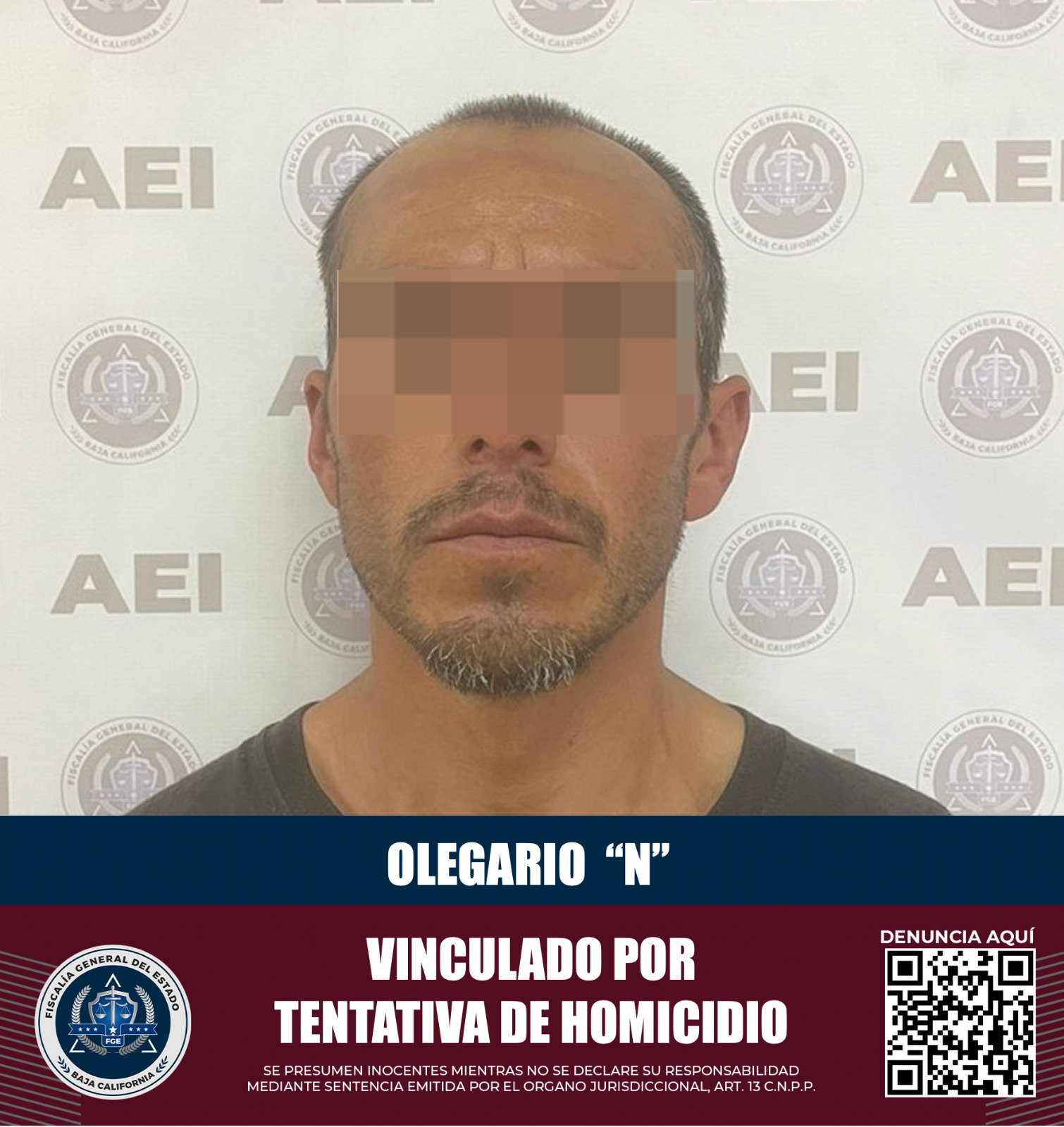 SAN QUINTÍN, B.C. La Fiscalía Regional de San Quintín logró la vinculación a proceso de un sujeto identificado como Olegario “N”, por el delito de homicidio calificado cometido con ventaja en grado de tentativa.