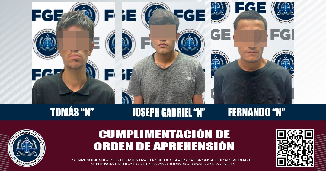 A los detenidos Joseph Gabriel “N”, Tomás “N” y Fernando “N” quien también utiliza el nombre de Orlando “N”, se les cumplimentó la orden de aprehensión por el delito de desaparición forzada, cometida por particulares agravada.