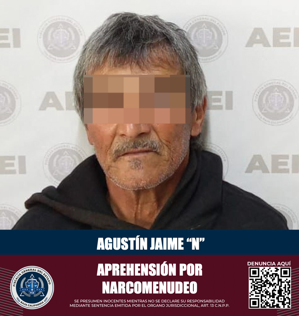 ENSENADA, B.C. Agentes de la Fiscalía General del Estado cumplimentaron una orden de aprehensión por el delito de narcomenudeo contra un sujeto identificado como Agustín Jaime “N”.