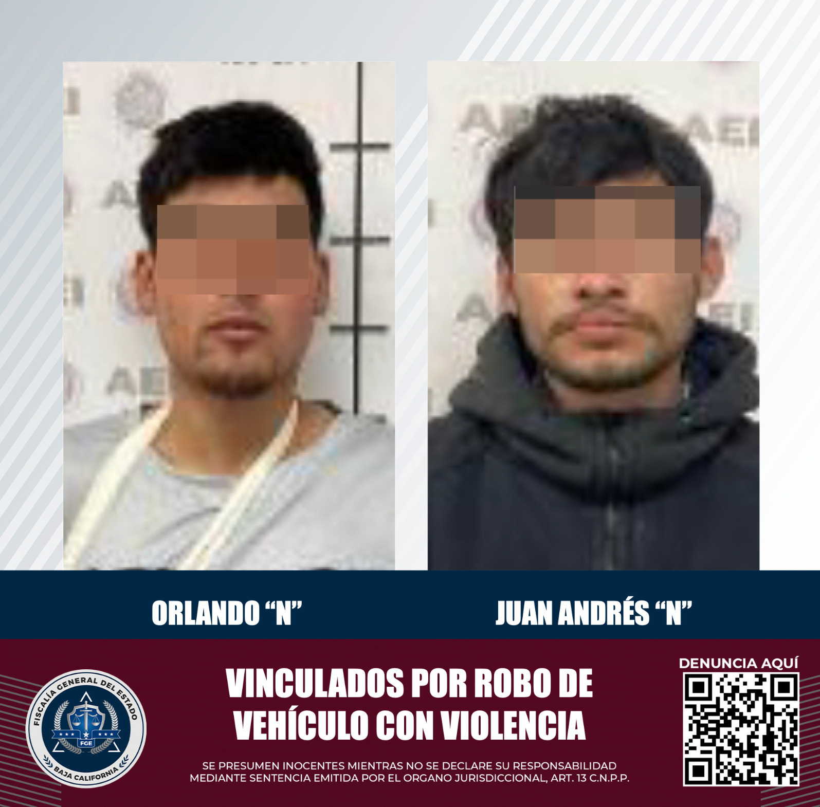 La Fiscalía General del Estado exhorta a la población para que continúe denunciando cualquier actividad sospechosa o delictiva, a través del sitio www.fgebc.gob.mx, línea de emergencias 9-1-1 y denuncia anónima 089.
