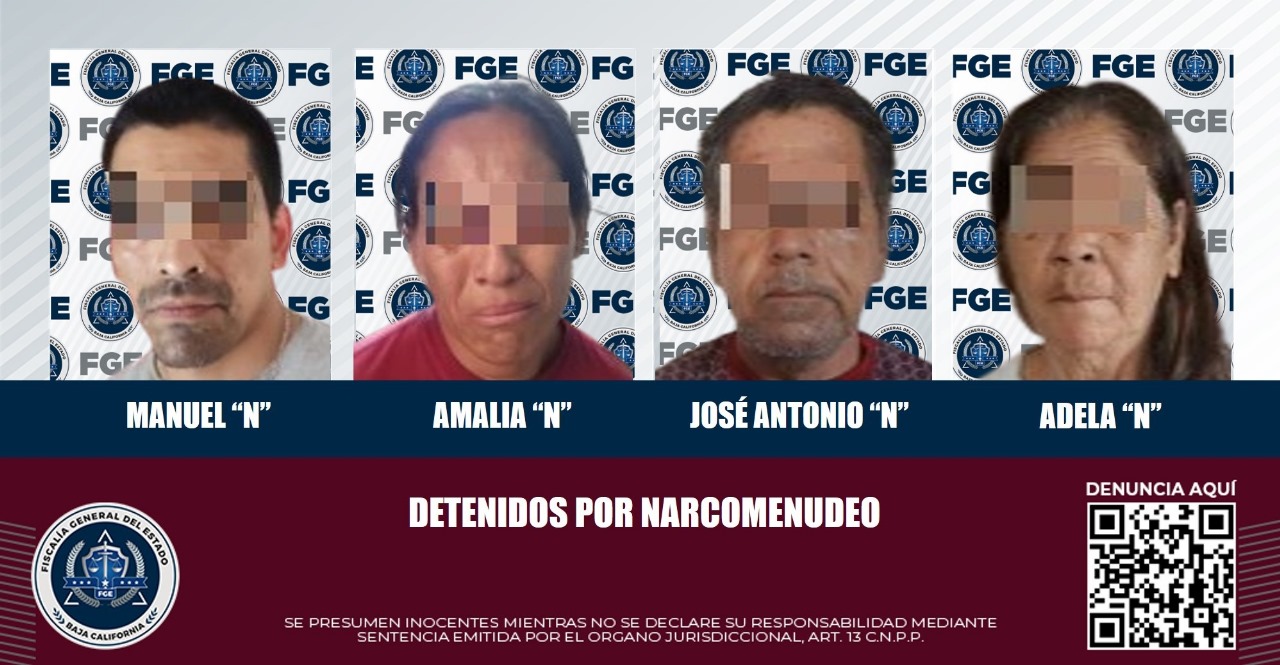 MEXICALI, B.C. Con la finalidad de asegurar a personas señaladas como distribuidores de droga, elementos de la Fiscalía Especializada en Narcomenudeo, realizaron cateos en diversas viviendas en donde detuvieron a dos parejas en posesión de enervante.