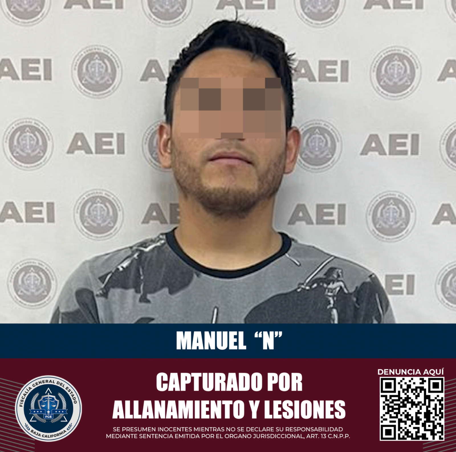 SAN QUINTÍN, B.C. Agentes de la Fiscalía General del Estado cumplimentaron una orden de aprehensión por los delitos de allanamiento de morada y lesiones, en contra un hombre identificado como Manuel “N”.