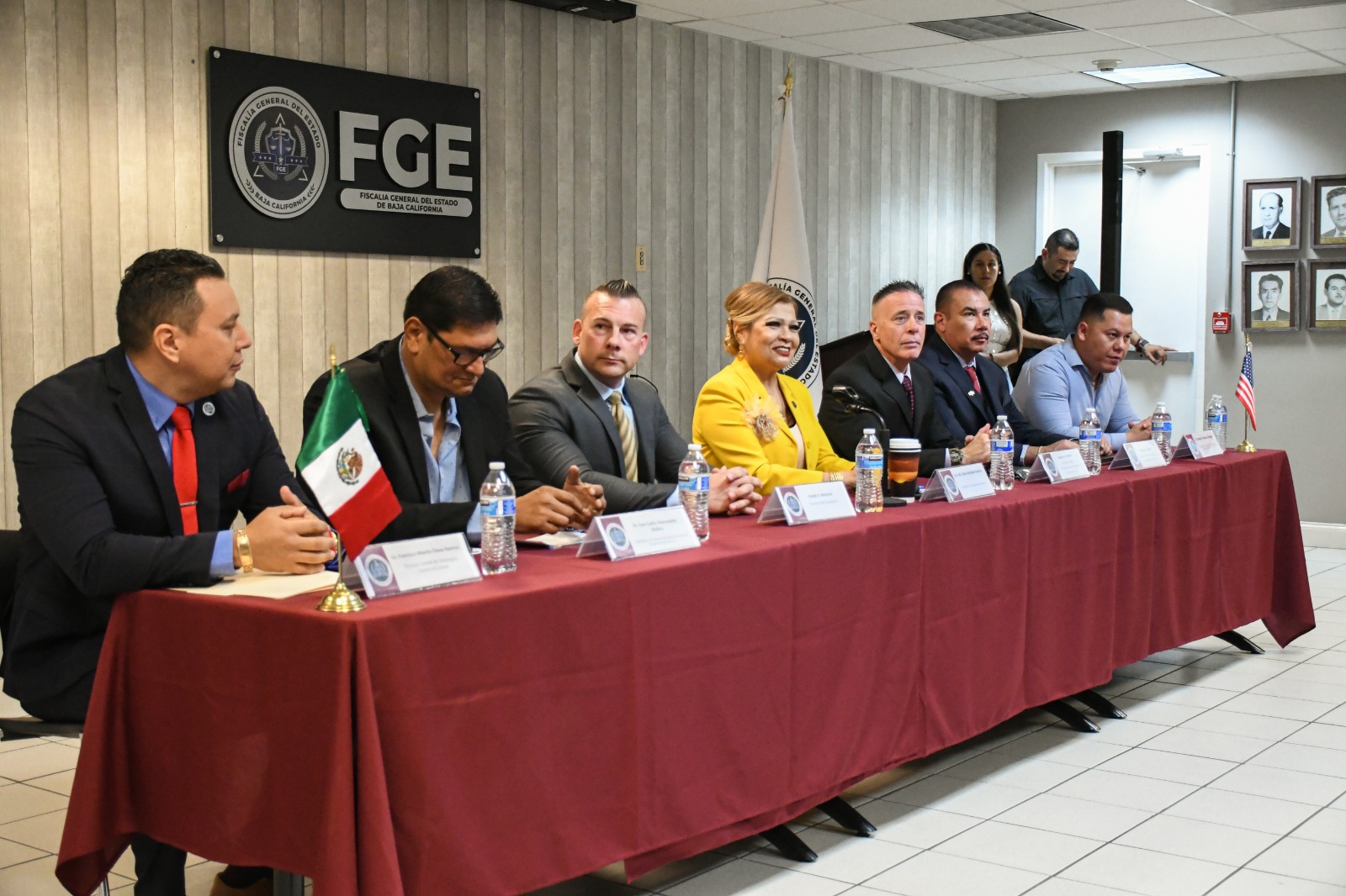 Por parte de la Fiscalía Estatal, el coordinador de Gabinete de la FGE, Juan Carlos Buenrostro Molina; el Fiscal Central, Rafael Orozco Vargas; el Fiscal Regional de Mexicali, Rafael Cervantes Sánchez; el Director Estatal de Estrategias Contra el Crimen, Francisco Alberto Chávez Ramírez, y el Comandante de la Agencia Estatal de Investigación en Mexicali, Gustavo Francisco Olivo Loroña.