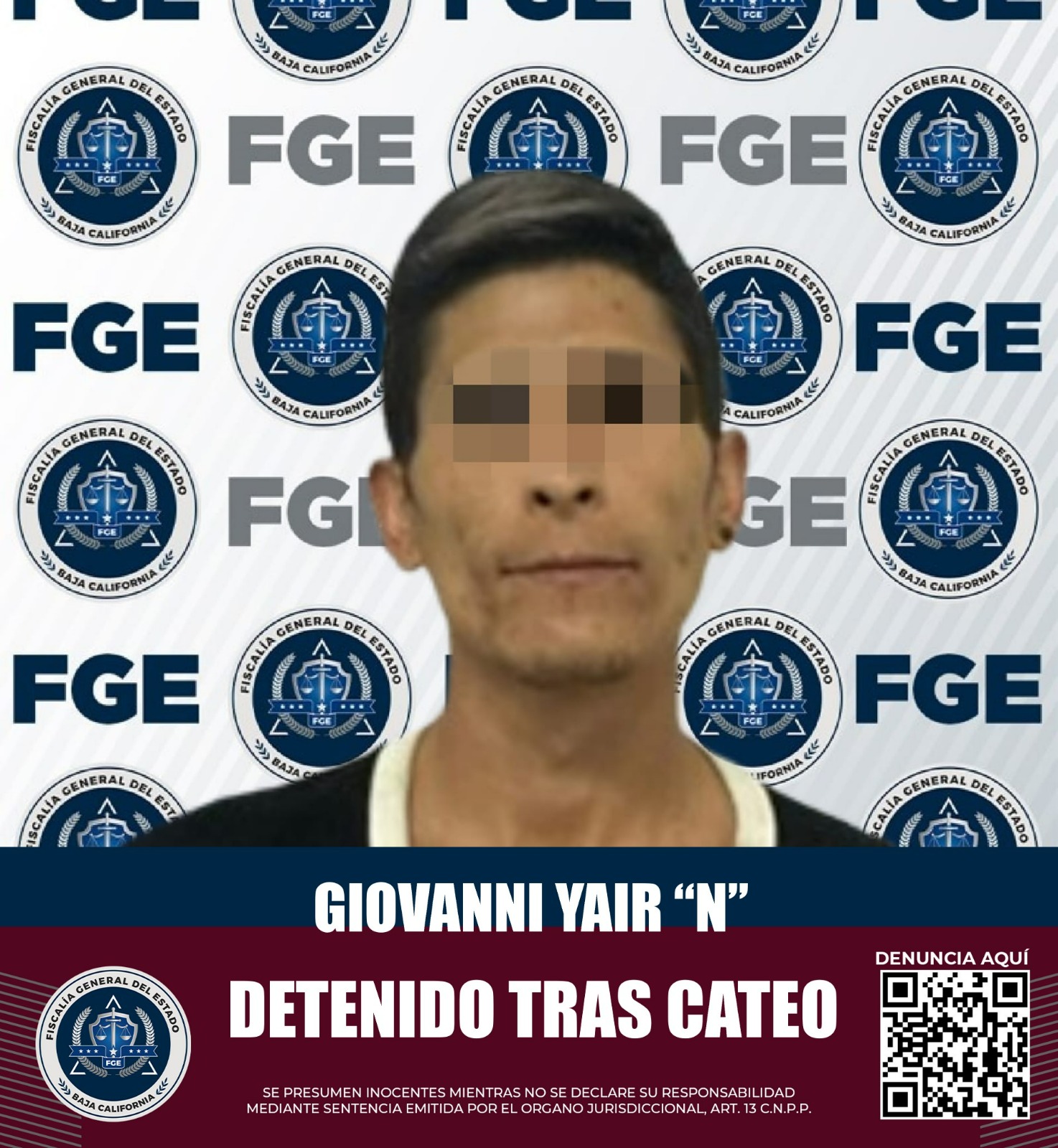 MEXICALI, B.C. Como resultado del cateo a una vivienda señalada como punto de venta de droga, personal de la Fiscalía Especializada en Narcomenudeo detuvo a Giovanni Yair “N” presunto vendedor de enervantes.