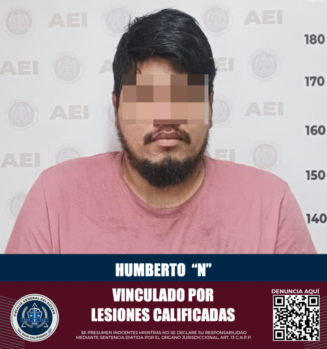 ENSENADA, B.C. La Fiscalía Regional de Ensenada logró la vinculación a proceso y medida cautelar de prisión preventiva contra un individuo identificado como Humberto “N”, por el delito de lesiones calificadas.