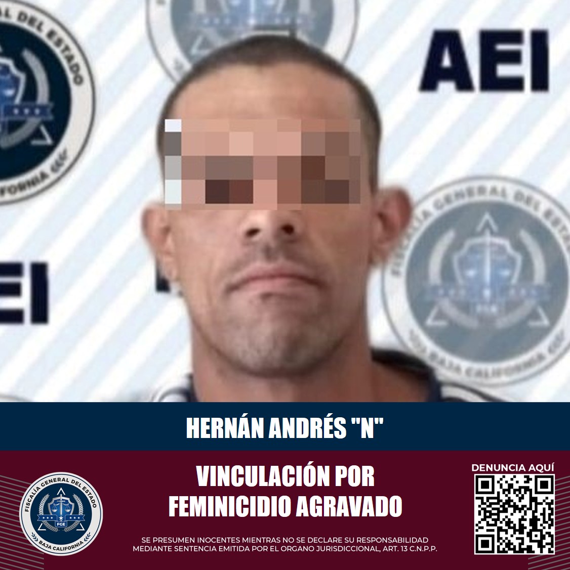 TIJUANA, B.C. La Fiscalía General del Estado (FGE), a través de los elementos de prueba presentados por el agente del Ministerio Público, logró la vinculación a proceso penal de Hernán Andrés “N”, alias “El Diablo”, acusado de feminicidio agravado.