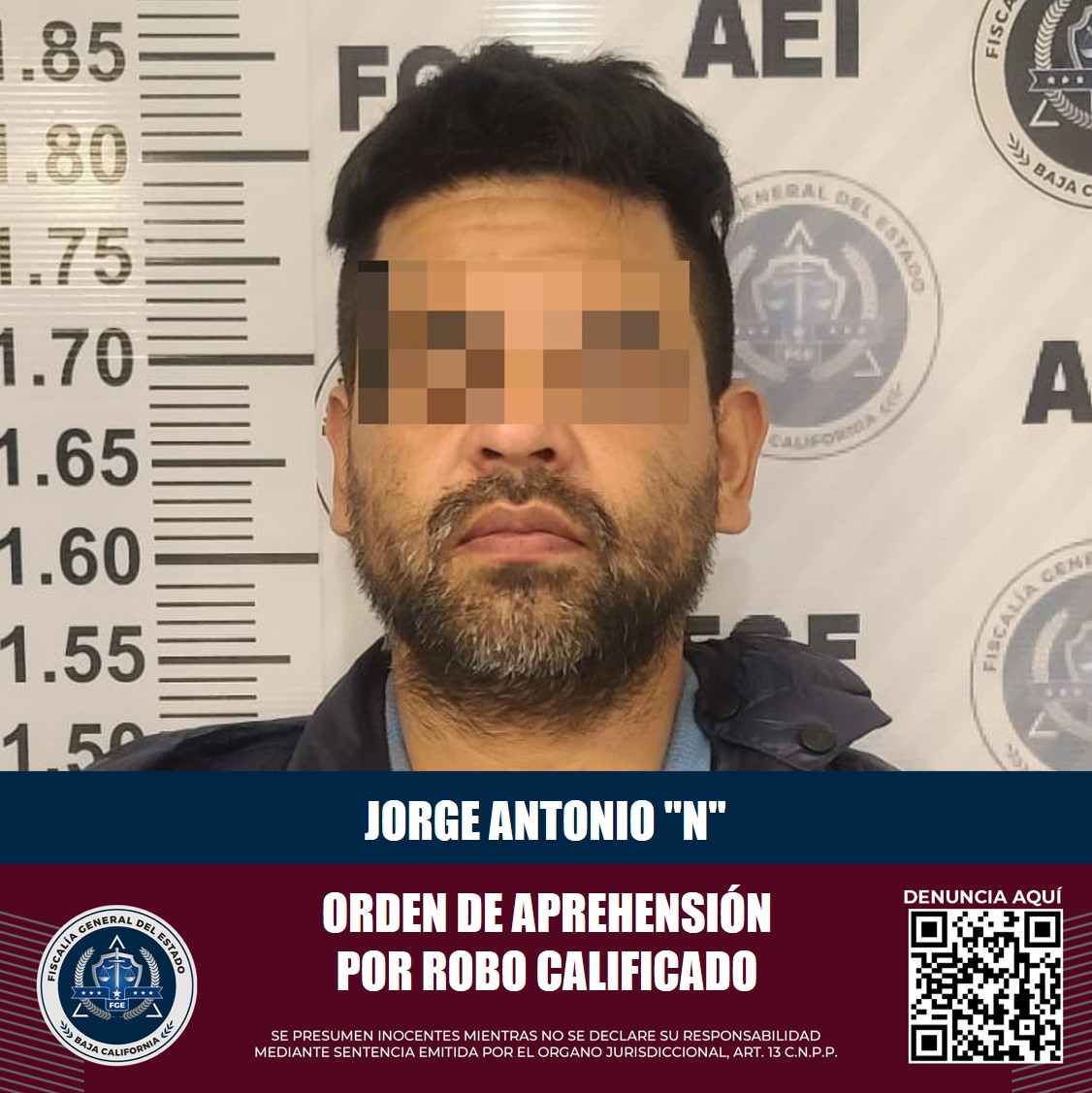 TIJUANA, B.C. La Fiscalía General del Estado (FGE) llevó a cabo la aprehensión de Jorge Antonio “N”, acusado por el delito de robo calificado cometido en un establecimiento comercial abierto al público con violencia.