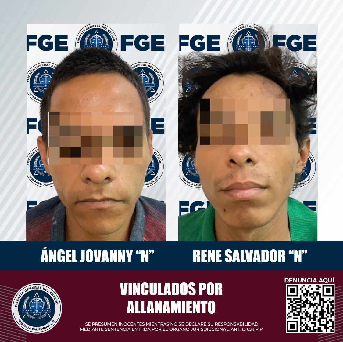 MEXICALI, B.C. Dos hombres presuntamente relacionados con el delito de allanamiento quedaron vinculados a proceso, según determinó el Juez con base en los elementos de prueba presentados por la Fiscalía Regional de Mexicali, a través de la Unidad de Investigación con Detenidos Oriente.