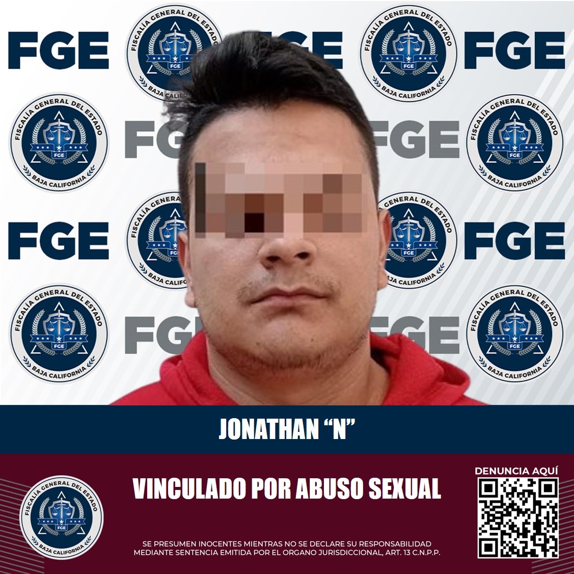 MEXICALI, B.C. La Fiscalía Regional de Mexicali a través de la Unidad de Investigación de Delitos con Detenidos Poniente, obtuvo auto de vinculación a proceso penal en contra de Jonathan “N”, acusado de abuso sexual.