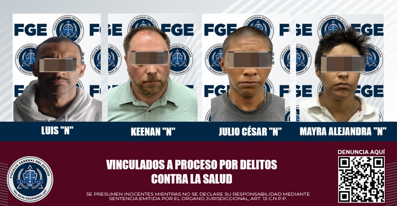 TIJUANA, B.C. En audiencias de vinculación realizadas por separado, cuatro imputados por delitos contra la salud en la modalidad de narcomenudeo, quedaron sujetos a proceso y con la medida cautelar de prisión preventiva, informó la Fiscalía General del Estado.