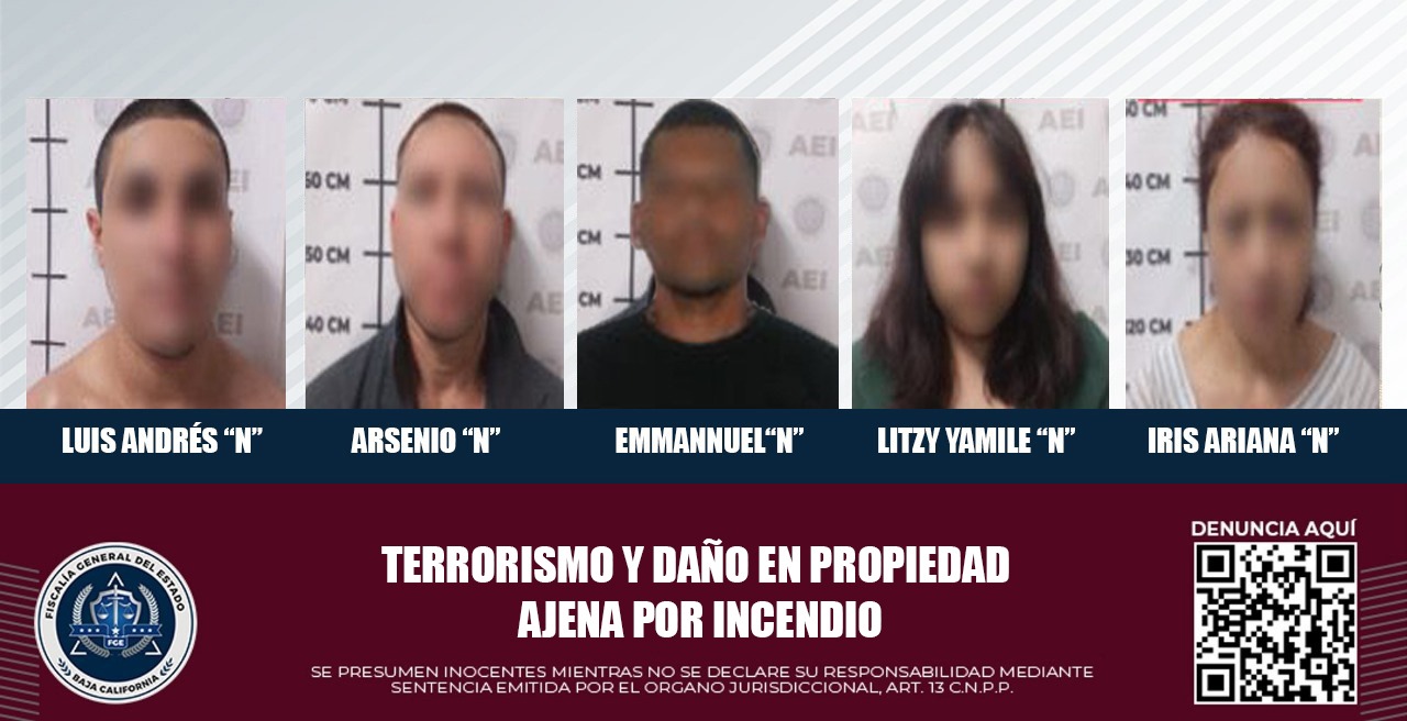 Durante una atención a medios, la titular de la FGE, Ma. Elena Andrade Ramírez, informó que tras una efectiva investigación realizada por elementos de la Fiscalía se logró establecer la identidad de tres hombres y dos mujeres que en días pasados arrojaron bombas molotov contra un bar provocando un incendio.