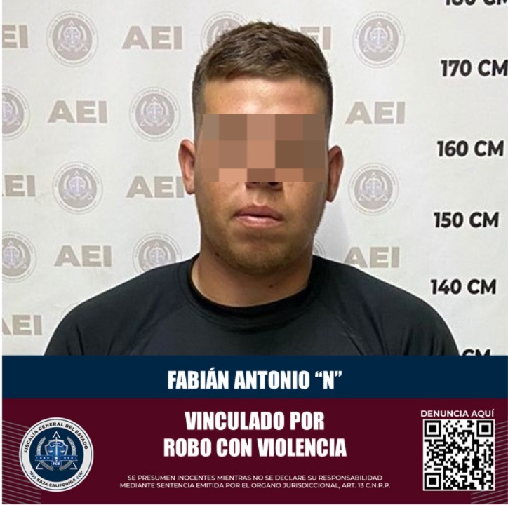 ENSENADA, B.C. En el marco de investigaciones por el delito de robo, la Fiscalía Regional de Ensenada logró vincular a proceso a un individuo por su presunta participación en dos asaltos a conductores de la plataforma Didi y un robo en una tienda de conveniencia.