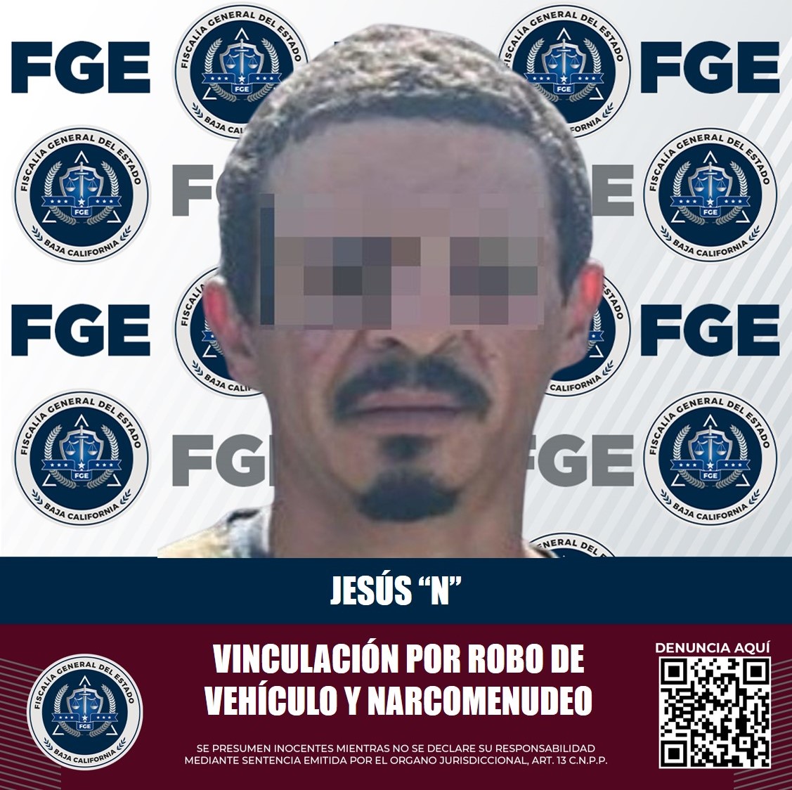 TECATE, B.C. Por los delitos de robo equiparado de vehículo de motor en su modalidad de uso y contra la salud en su modalidad de narcomenudeo, un sujeto que responde al nombre de Jesús “N”, fue vinculado a proceso a través de los elementos de prueba recabados por la Fiscalía Regional de Tecate y presentados ante un Juez de Control.