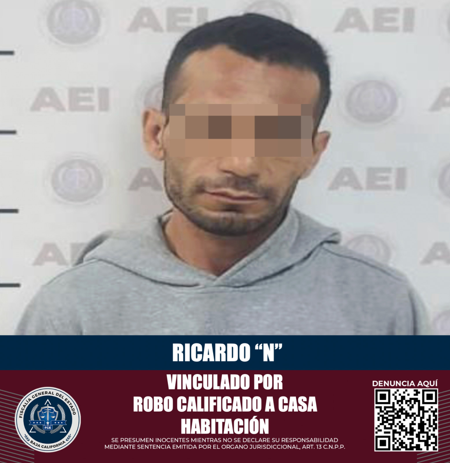 SAN QUINTÍN, B.C. La Fiscalía Regional de San Quintín logró la vinculación a proceso contra un sujeto identificado como Ricardo “N”, detenido por robo en un domicilio.