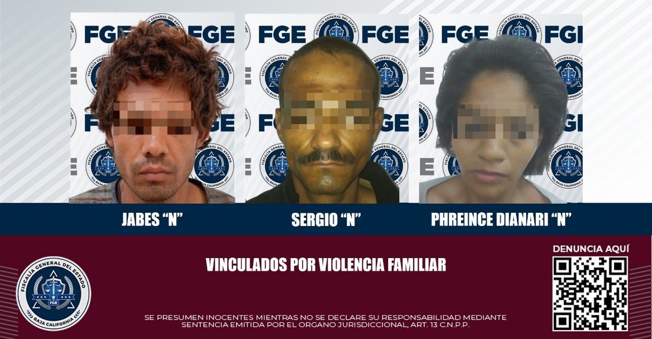 MEXICALI, B.C. La Fiscalía Regional de Mexicali obtuvo la vinculación a proceso en contra de dos hombres y una mujer por el delito de violencia familiar, mediante de audiencias por separado.