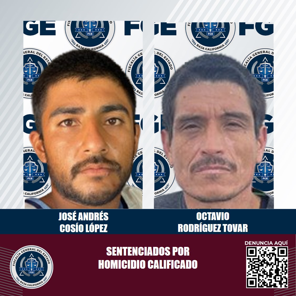 MEXICALI, B.C. Como resultado de la correcta integración de la carpeta de investigación, la Fiscalía General del Estado (FGE), logró una pena condenatoria en contra de dos acusados por el delito de homicidio calificado, registrado en septiembre de 2021.