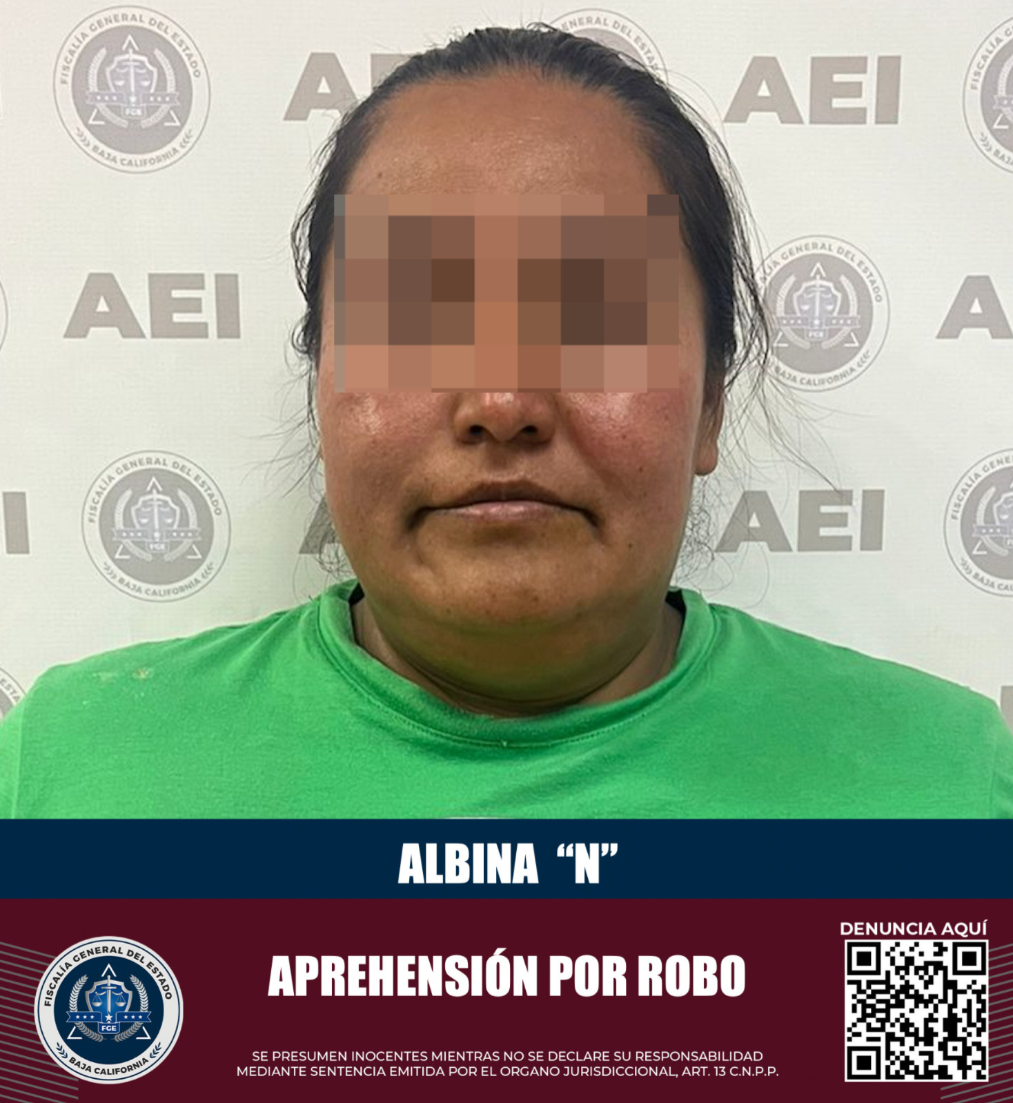 La detenida, identificada como Albina “N”, estaría implicada en un robo sucedido el pasado 20 de diciembre de 2021, en un domicilio ubicado en calle Mariano Matamoros de la colonia Ampliación Lázaro Cárdenas.