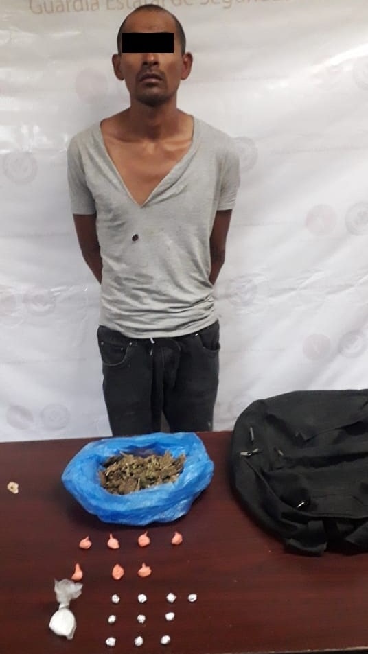 En las inmediaciones del fraccionamiento Valle de las Misiones, se aseguró a JOSÉ ANTONIO “N” de 30 años, quien traía en una mochila 10 envoltorios en papel aluminio conteniendo una sustancia café y pastosa.