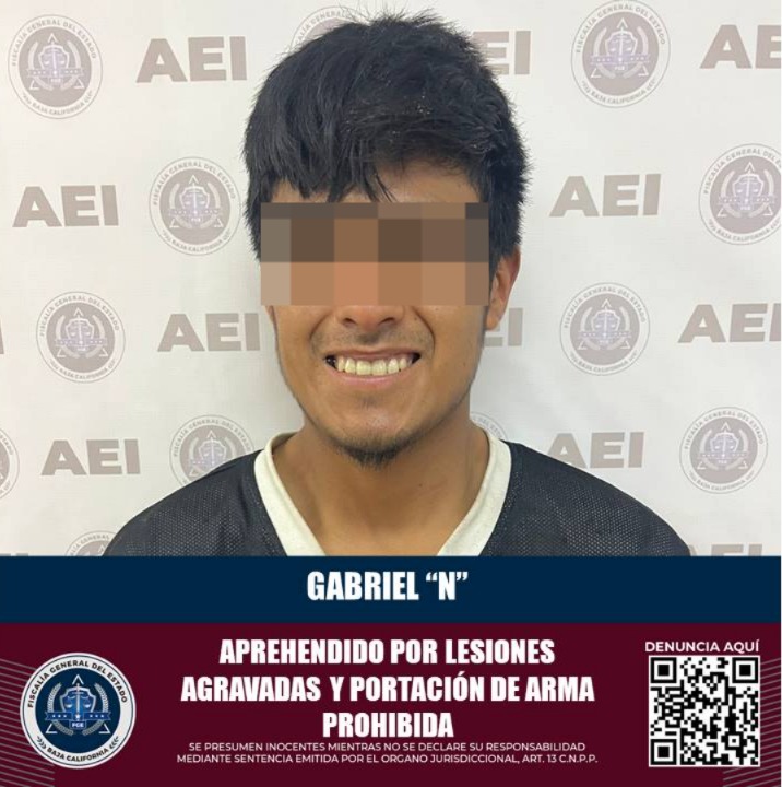SAN QUINTÍN, B.C. Un individuo con una orden de aprehensión vigente por los delitos de lesiones agravadas por razón de parentesco y portación de arma prohibida fue arrestado por agentes de la Fiscalía Estatal en San Quintín.