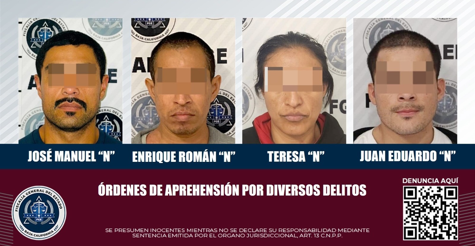 TIJUANA, B.C. Cuatro personas fueron aprehendidas por elementos de la Agencia Estatal de Investigación (AEI) debido a la existencia de mandamientos judiciales en su contra, en acciones realizadas en diversas colonias de la ciudad de Tijuana.