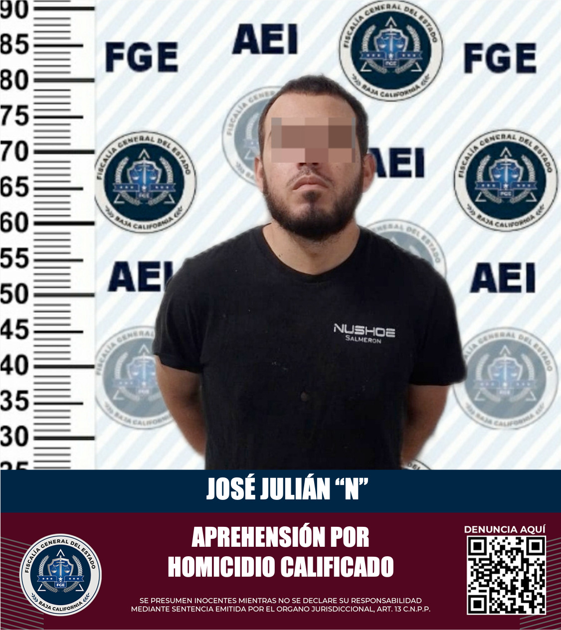 TIJUANA, B.C. La labor de investigación desarrollada por la Fiscalía General del Estado, y la aportación de pruebas ante un Juez de Control, derivó en la obtención y cumplimentación de una orden de aprehensión en contra de José Julián “N”, acusado de homicidio calificado con ventaja.