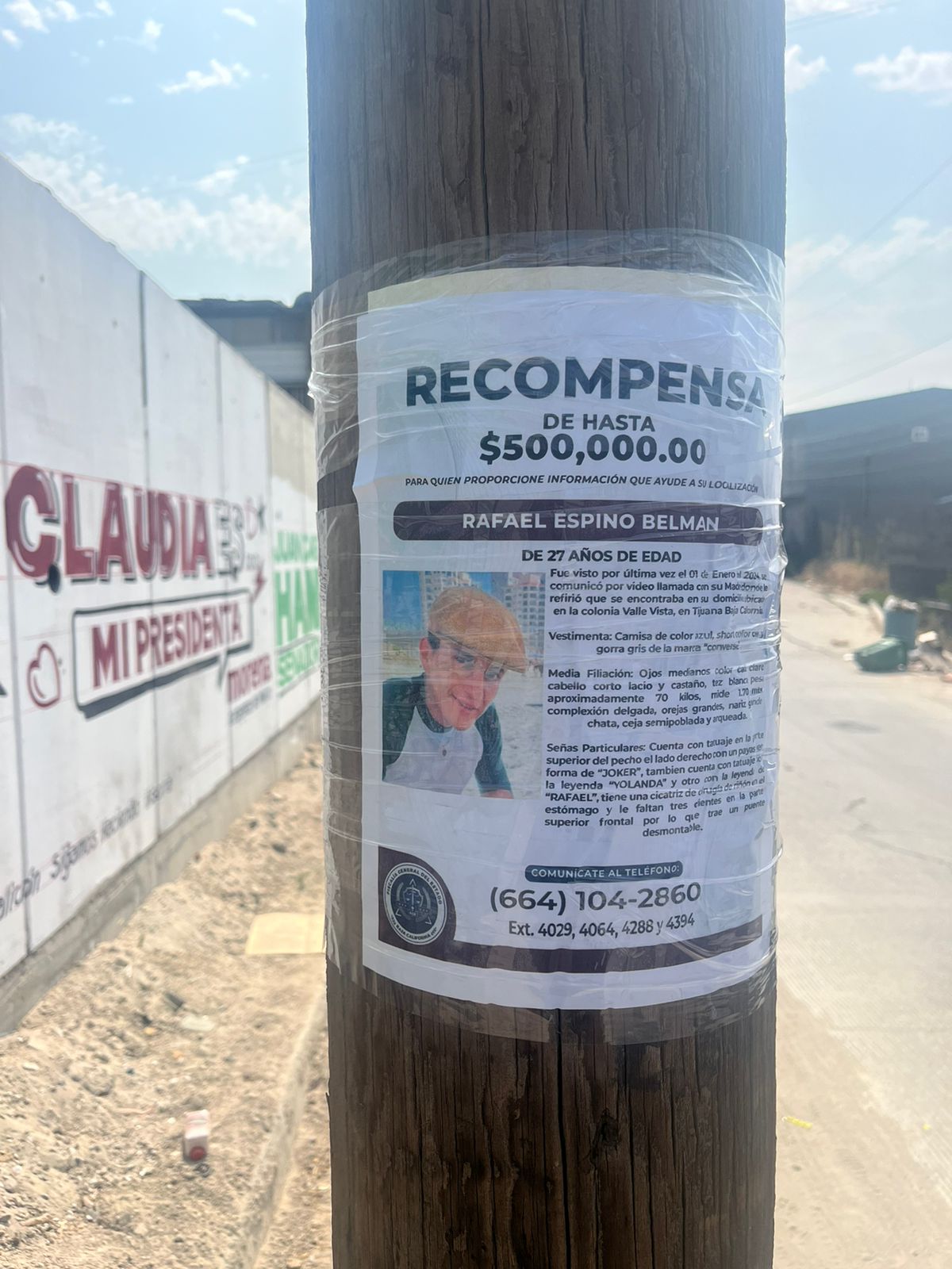TIJUANA, B.C. La Fiscalía General del Estado (FGE) llevó a cabo una jornada de búsqueda para localizar a Rafael Espino Belman, de 27 años de edad, quien se encuentra desaparecido desde el 1 de enero de 2024.