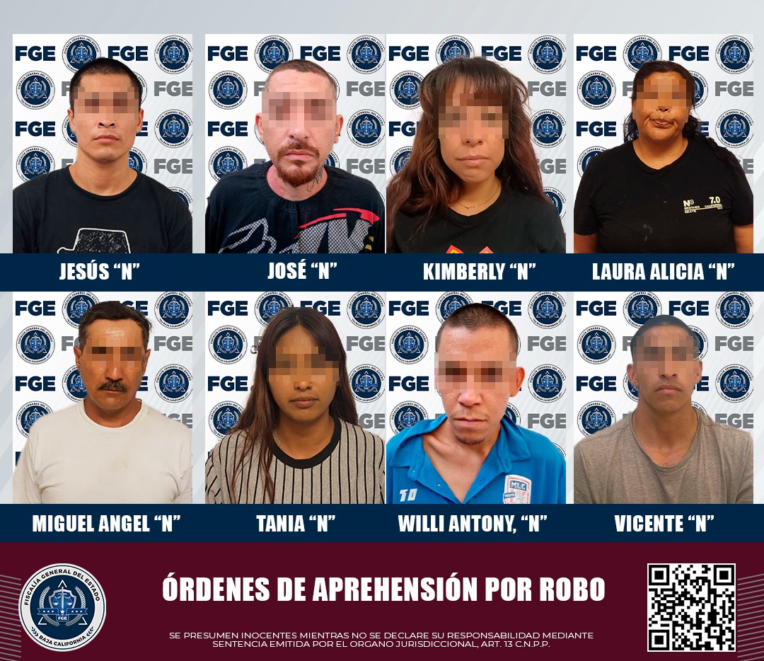 MEXICALI, B.C. Elementos de la Fiscalía Regional de Mexicali, a través de diversos operativos efectuados en distintos puntos de la ciudad, lograron la aprehensión de ocho prófugos de la justicia por el delito de robo en sus diferentes modalidades.