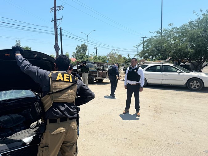 En el despliegue policíaco participaron elementos de Unidad Especializada en Delitos de Robo de Vehículos adscritos a Mexicali y San Felipe, con apoyo de agentes de la Dirección de Seguridad Pública Municipal.