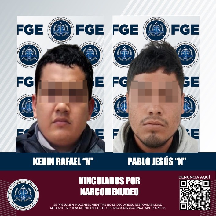 ENSENADA, B.C. Dos hombres identificados como Pablo de Jesús “N” y Kevin Rafael “N”, fueron vinculados a proceso en hechos distintos por su presunta participación en el delito de narcomenudeo, informó la Fiscalía General del Estado.