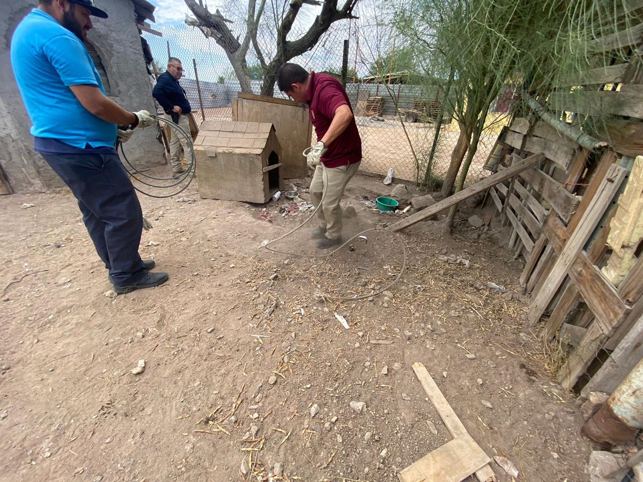 Al lugar llegaron un agente y un auxiliar del Ministerio Público, acompañados por elementos de la Agencia Estatal de Investigación (AEI) y personal de Control Animal del Ayuntamiento de Mexicali, quienes llevaron a cabo el operativo.