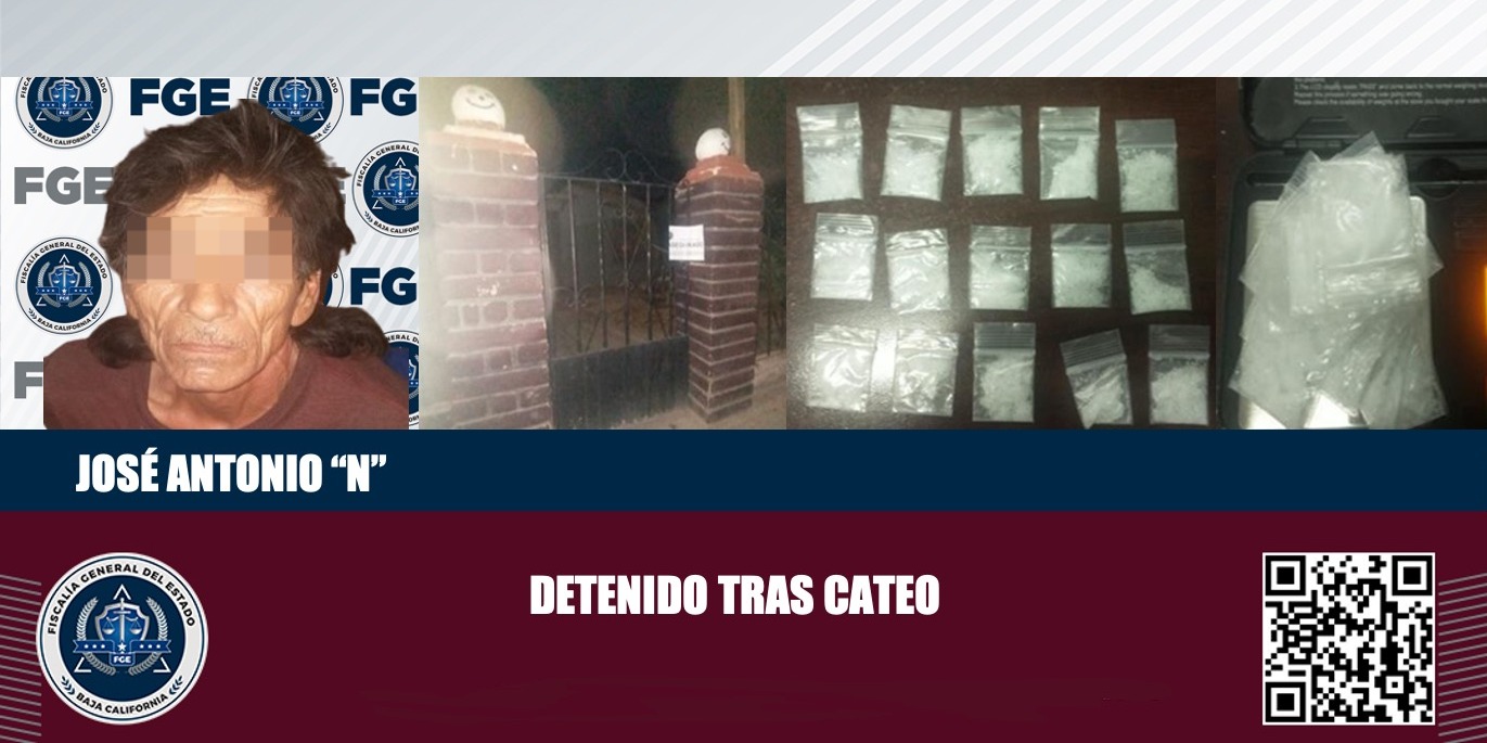 MEXICALI, B.C. Con la finalidad de asegurar a personas señaladas como distribuidores de droga en “tienditas”, elementos de la Fiscalía General del Estado (FGE), cumplimentaron una orden de cateo en donde detuvieron a una persona en posesión de enervante.