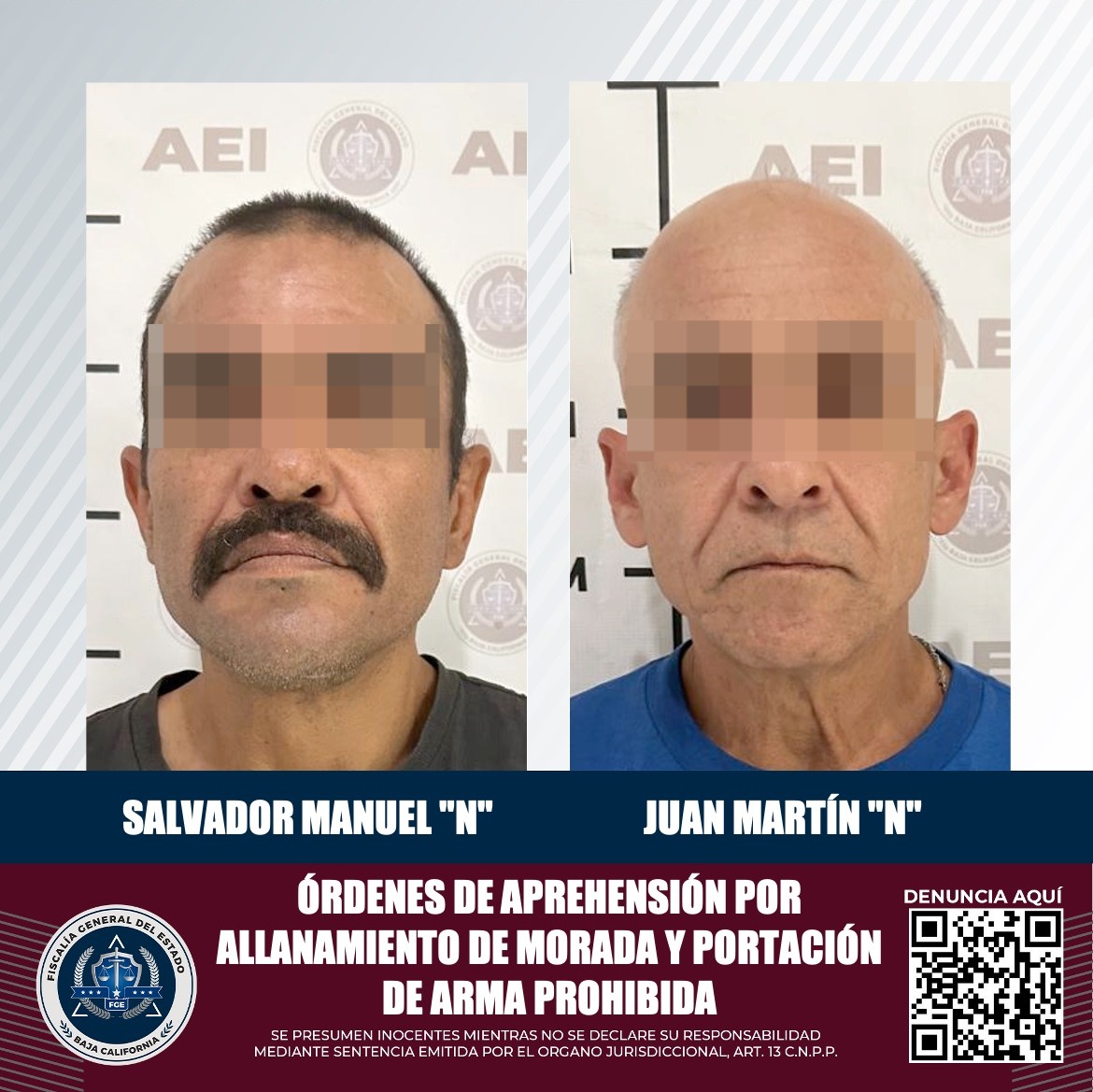 PLAYAS DE ROSARITO, B.C. Acciones de gabinete y campo realizadas por la Agencia Estatal de Investigación de la Fiscalía General del Estado resultaron en que dos hombres fueran puestos a disposición de un Juez de Control, por estar relacionados, en casos por separado, con los delitos de allanamiento de morada y portación de arma prohibida.
