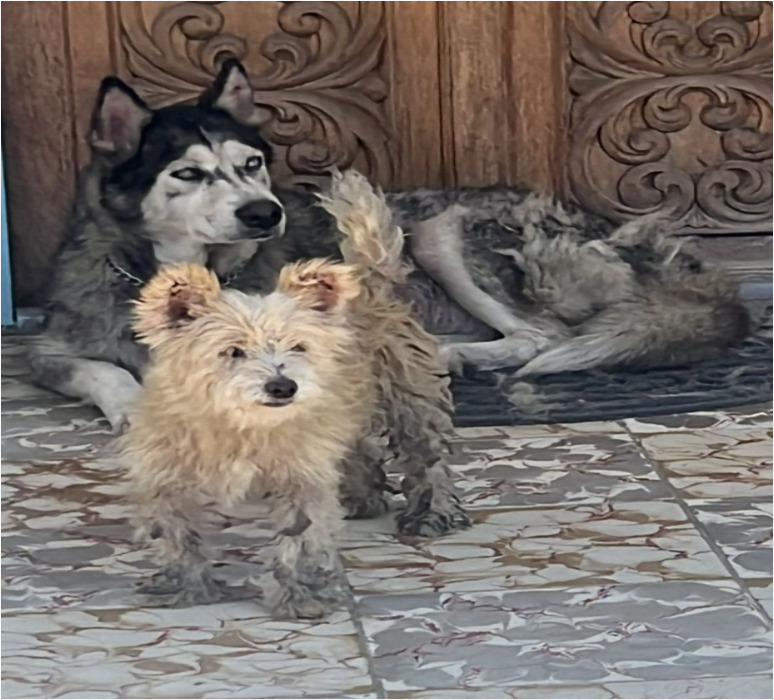 Durante el operativo, se logró rescatar a dos perros en situación de vulnerabilidad. Uno de los animales es un perro de raza Husky que presentaba sarna, partes del cuerpo enrojecidas y sin pelaje, estado de desnutrición y posibles infecciones estomacales. El otro es un perro de raza mediana con pelaje largo, que se encontraba en evidente suciedad y con un tumor de gran tamaño. Ambos animales fueron resguardados para recibir atención.