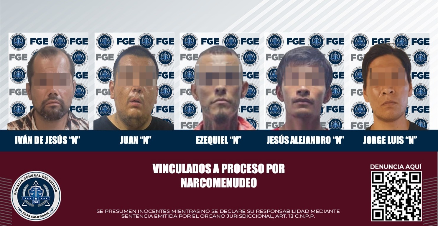 TIJUANA, B.C. La Fiscalía General del Estado informa que cinco imputados fueron vinculados a proceso penal por delitos contra la salud en diferentes casos.