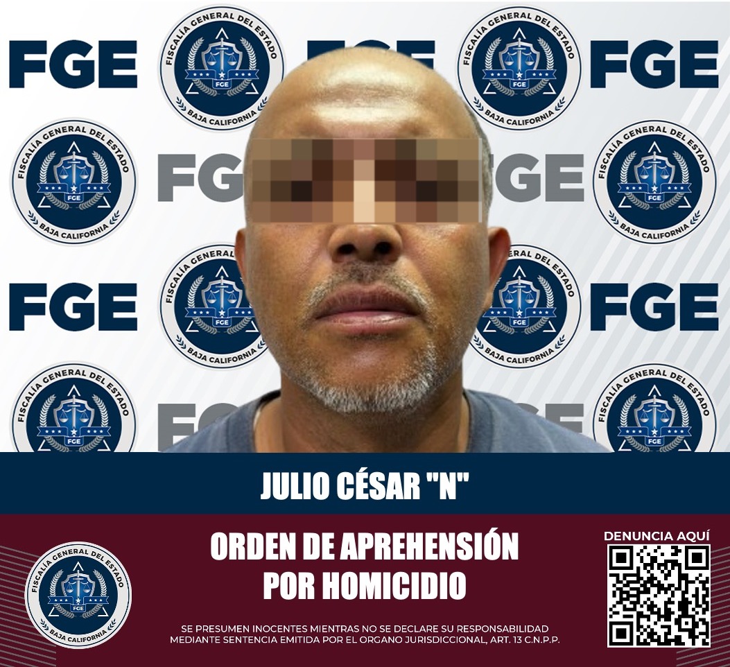 MEXICALI, B.C. Elementos de la Fiscalía General del Estado cumplimentaron una orden de aprehensión en contra de Julio César “N”, acusado por el delito de homicidio calificado por ventaja, crimen ocurrido el 20 de agosto del 2023.