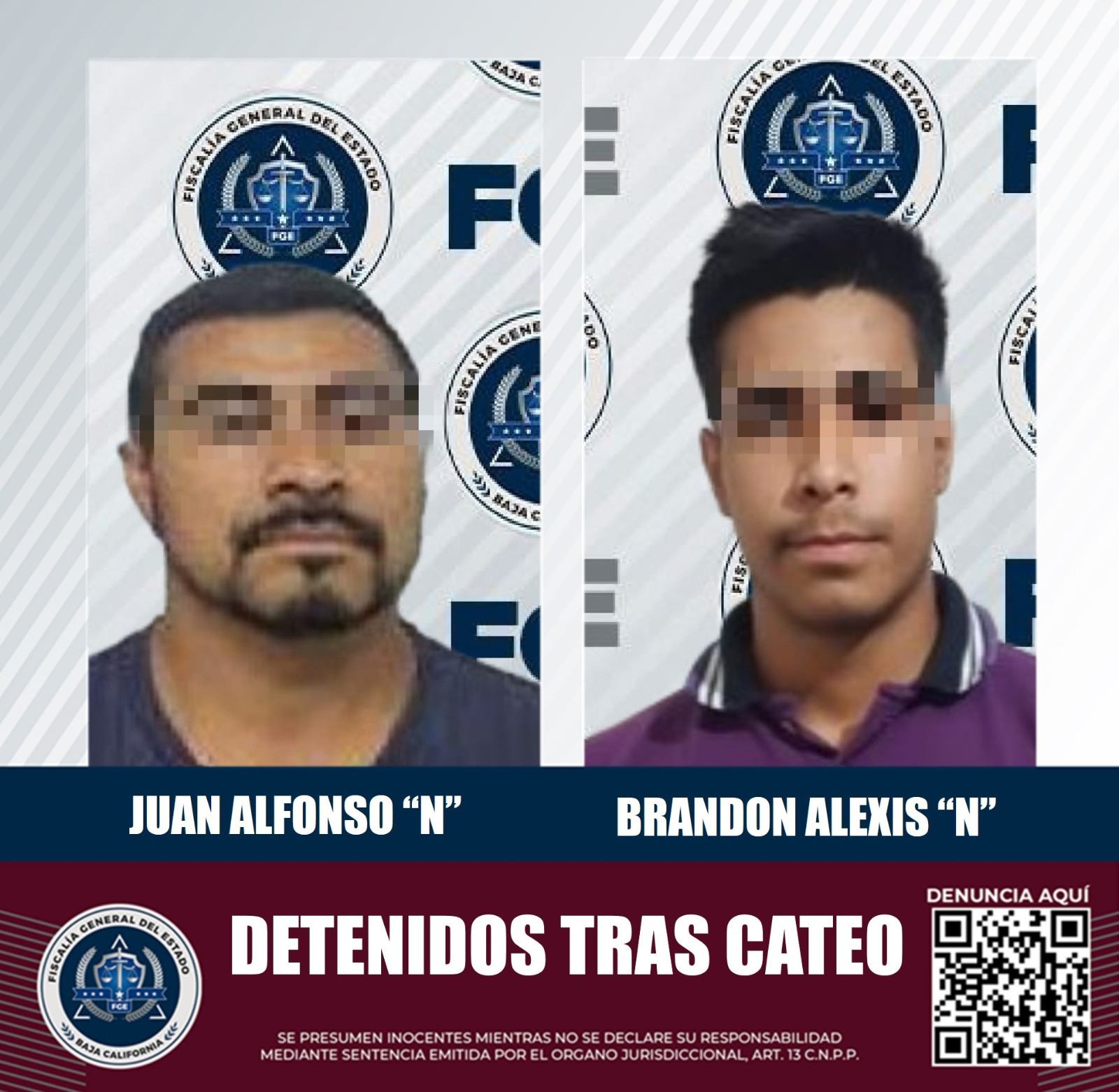 MEXICALI, B.C. Dos presuntos vendedores de droga fueron detenidos por elementos de la Fiscalía Especializada en Narcomenudeo, tras un cateo efectuado en las inmediaciones del fraccionamiento Valle del Pedregal Quinta Sección.