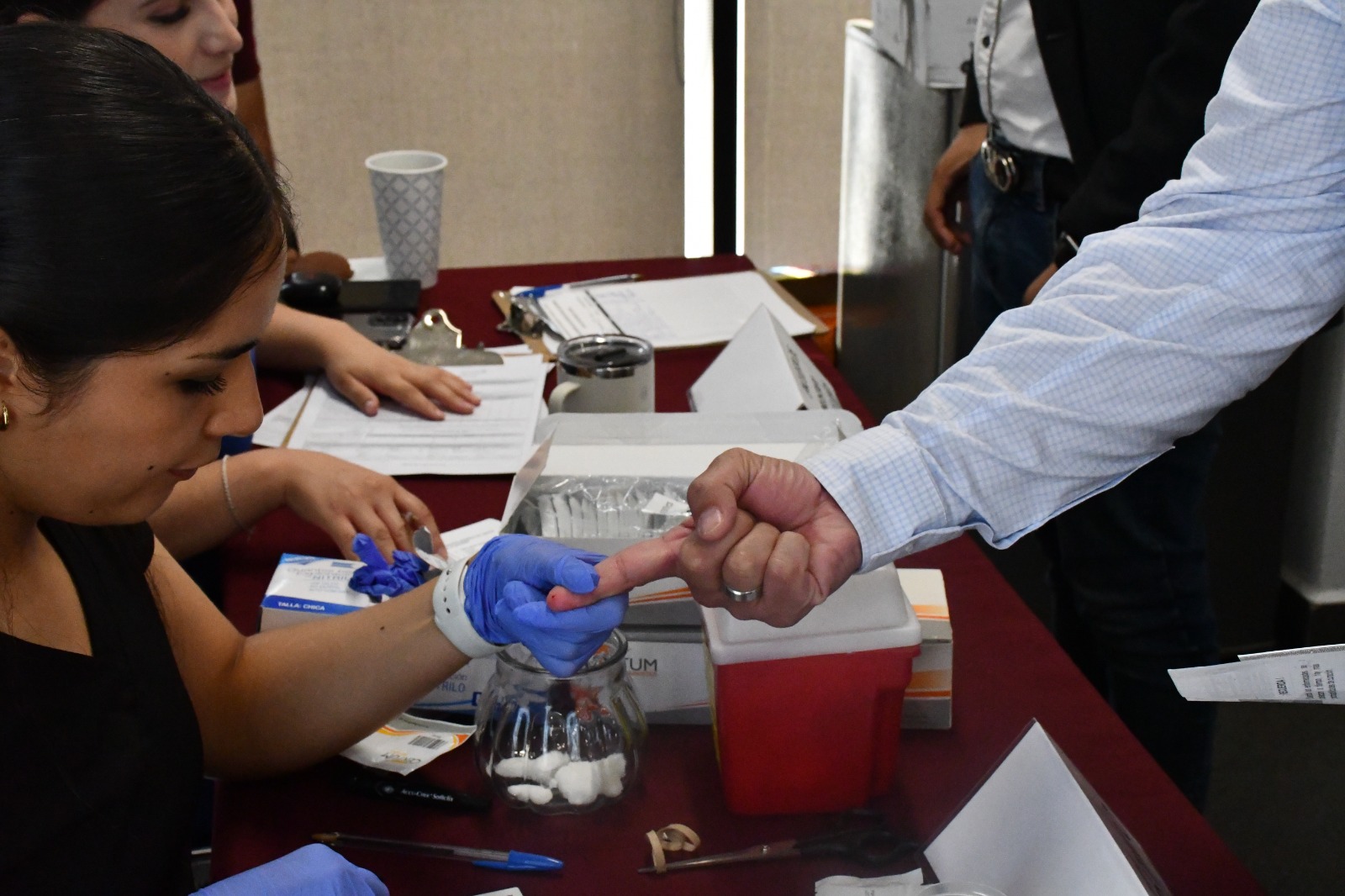 En el lugar de la conferencia, se colocó un módulo de atención para los colaboradores mayores de 45 años, en donde se les aplicó una prueba rápida de antígeno para determinar si cuentan con algún factor de riesgo o si son propensos a padecer esta enfermedad.
