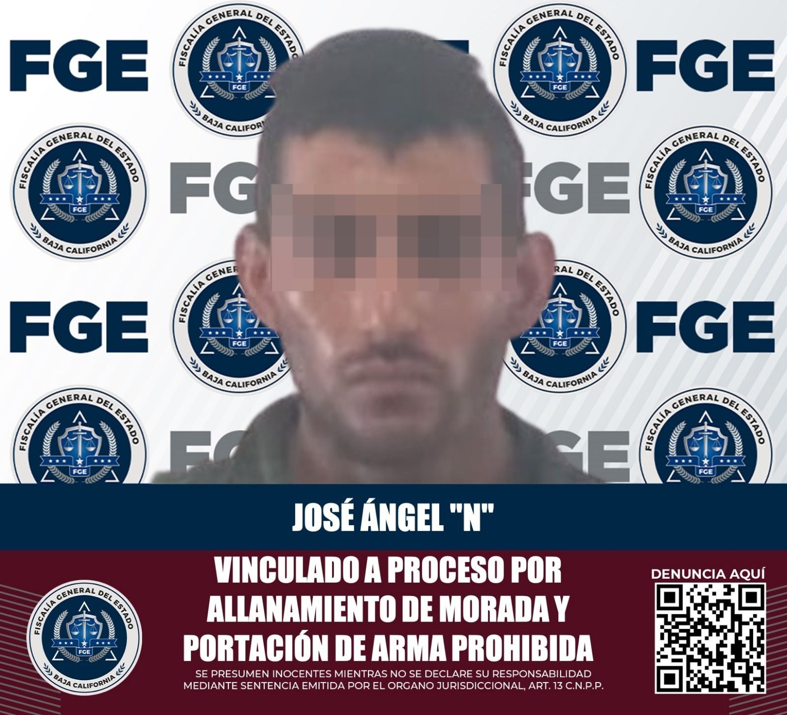 TECATE, B.C. La Fiscalía Regional de Tecate informa que, como resultado de los elementos de prueba presentados por el Ministerio Público, el Juez de Control ha determinado vincular a proceso a un imputado por los delitos de allanamiento de morada y portación de arma prohibida.