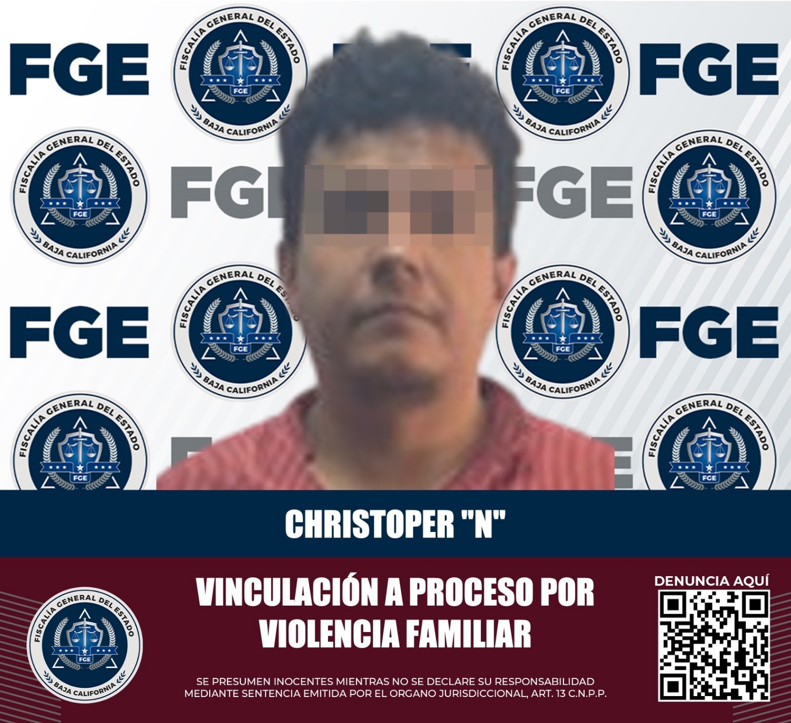 TIJUANA, B.C. La Fiscalía General del Estado, logró vincular a proceso a Christoper “N”, probable responsable del delito de lesiones agravadas por razón del parentesco y violencia familiar.
