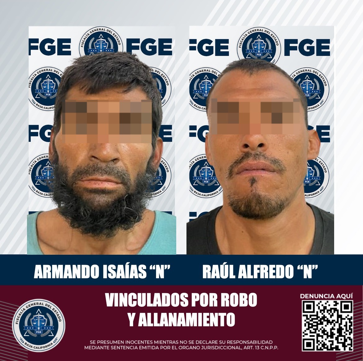 MEXICALI, B.C. La Fiscalía Regional de Mexicali obtuvo la vinculación a proceso en contra de dos sujetos relacionados en los delitos de robo calificado a casa habitación y allanamiento de morada.