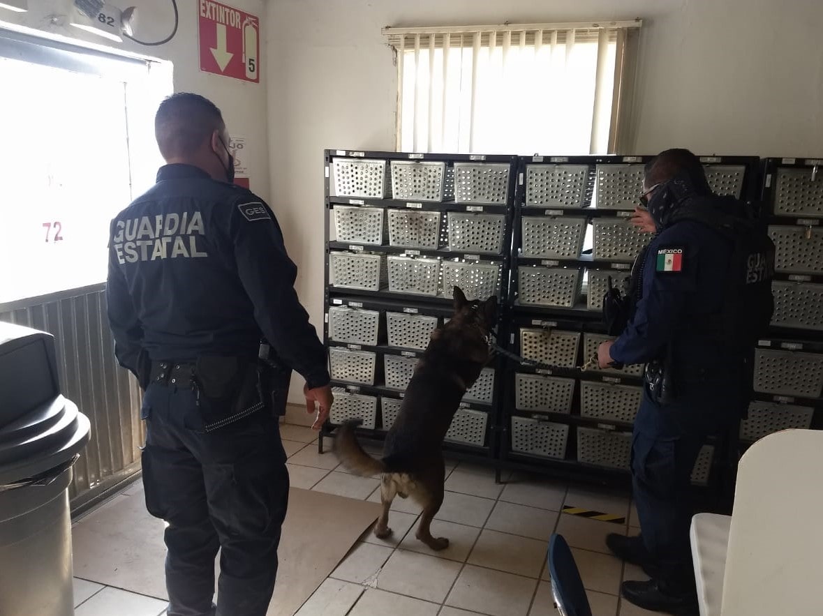 A través de la Unidad de Operaciones Caninas (K9), con la ayuda del binomio Caín se revisó en el área de lockers, almacén y área de embarque, así como zonas perimetrales de dicha fábrica con el fin de garantizar la seguridad del personal y clientes