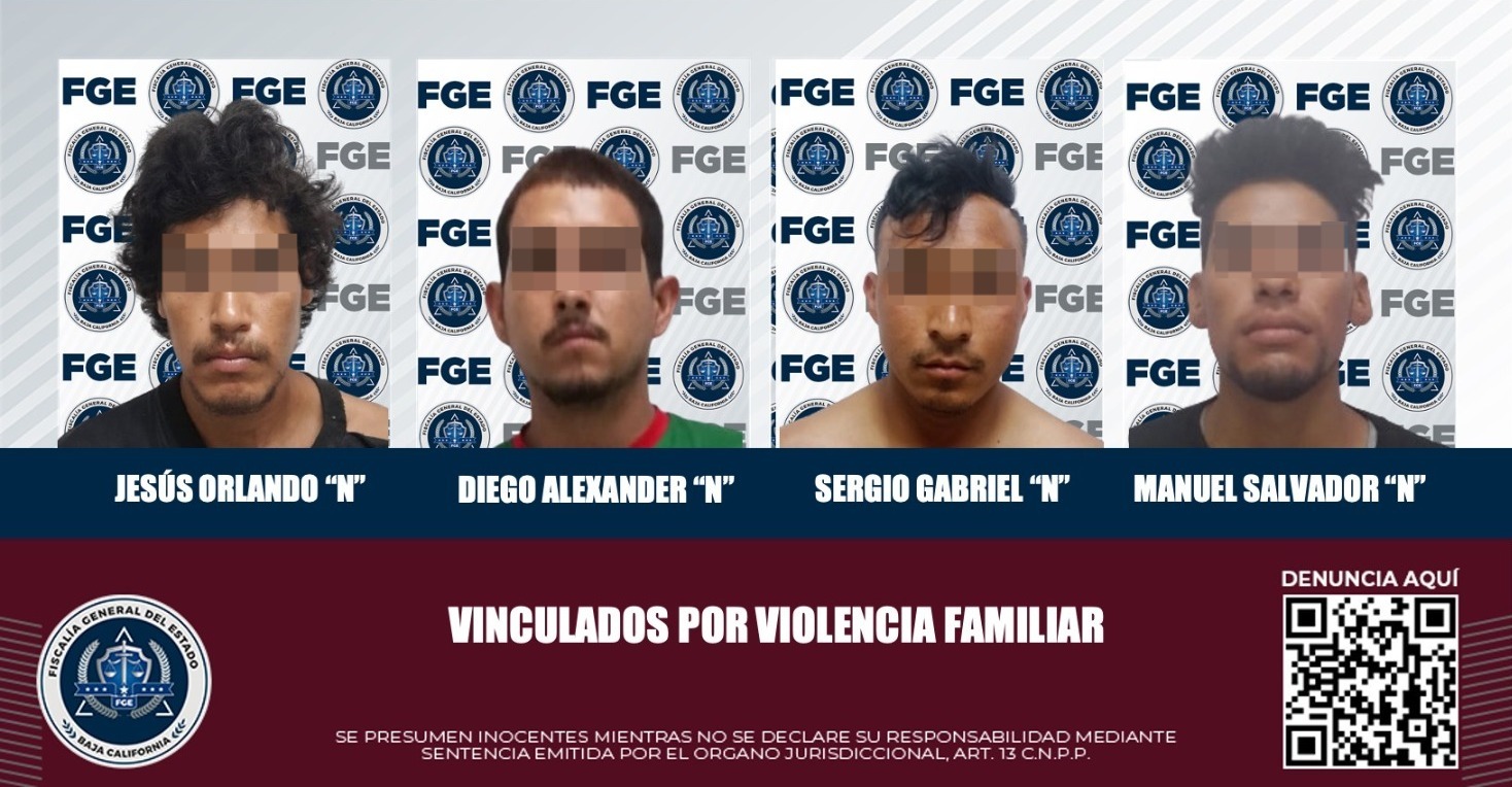 MEXICALI, B.C. La Fiscalía Regional de Mexicali a través de la Unidad de Investigación de Guadalupe Victoria obtuvo la vinculación a proceso en contra de cuatro hombres por el delito de violencia familiar, en audiencias por separado.