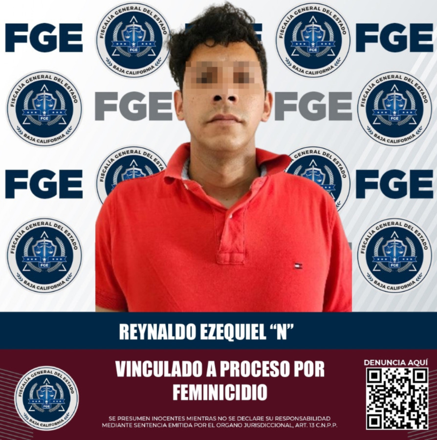 TIJUANA, B.C. La Fiscalía General del Estado, a través de los elementos de prueba presentados por el agente del Ministerio Público, logró la vinculación a proceso penal de Reynaldo Ezequiel “N”, acusado del delito de feminicidio.