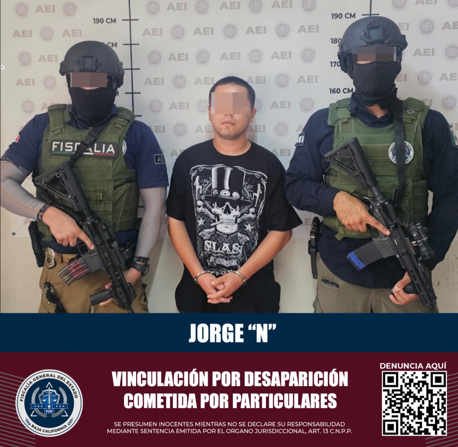 ENSENADA, B.C. La Fiscalía General de Baja California mantiene resultados en el combate a la criminalidad, gracias al trabajo del agente del Ministerio Público y de agentes policiales de la Unidad de Investigación y Persecución de Delitos de Desaparición Forzada y Desaparición Cometida por Particulares, se logró vincular a un hombre al proceso judicial por su presunta participación en la desaparición de una mujer.