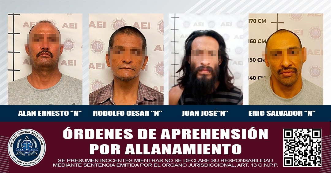 MEXICALI, B.C. Elementos de la Fiscalía Regional de Mexicali, a través de diversos operativos efectuados en distintos puntos de la ciudad, lograron la aprehensión de cuatro prófugos de la justicia por el delito de allanamiento de morada.