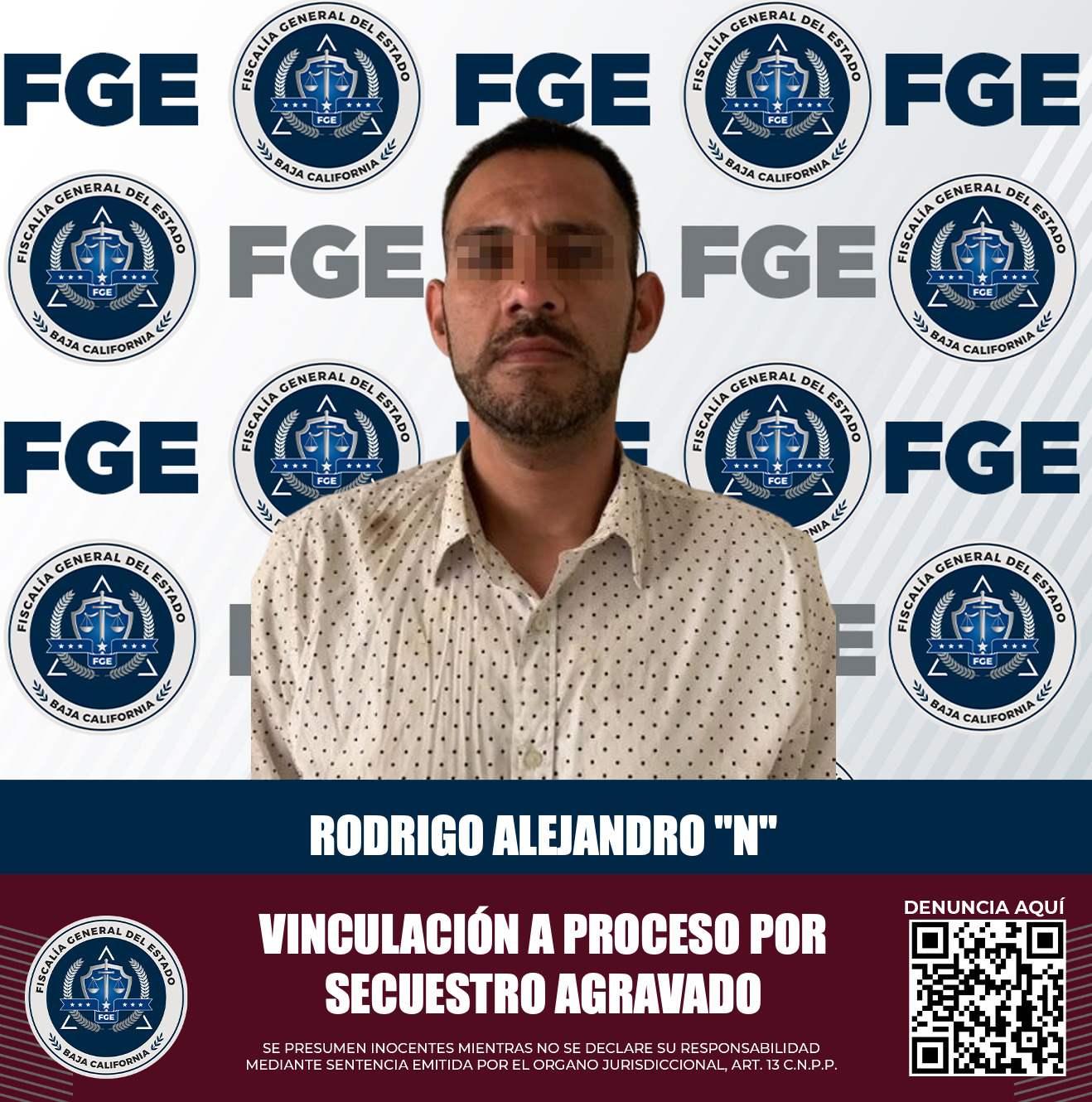 TECATE, B.C. La Fiscalía General del Estado de Baja California, a través de su Unidad de Investigación Especializada en Combate al Secuestro, informa sobre la vinculación a proceso de Rodrigo Alejandro “N”, imputado por el delito de secuestro agravado, en un hecho ocurrido el pasado 30 de julio.